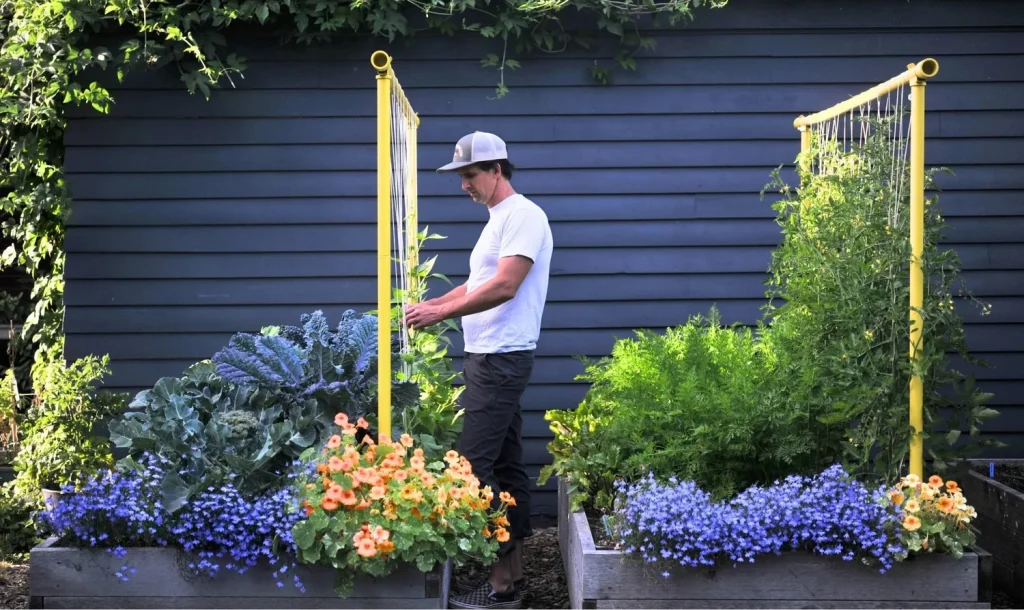 Whether you’re training tomatoes up a string trellis or letting sweet peas climb a net, growing vertically helps both your garden and your back.
