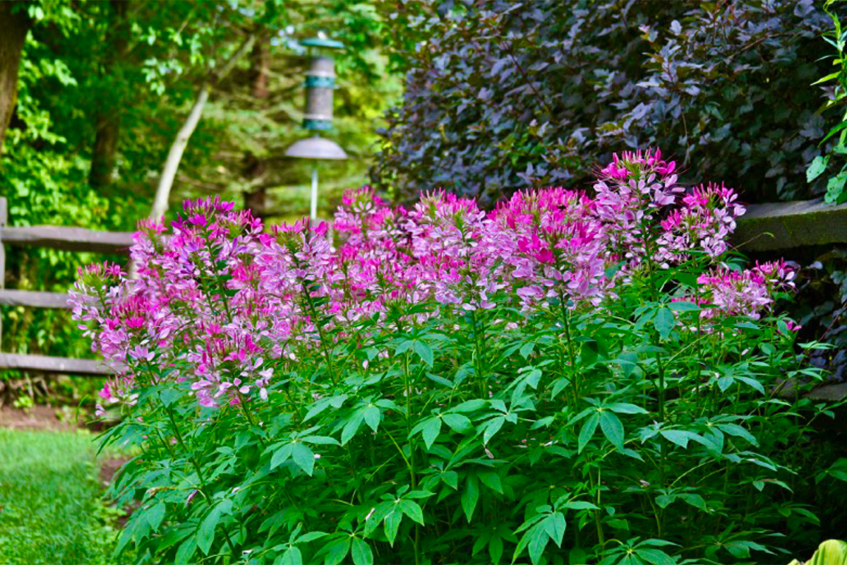 Easily growing 3 to 5 feet tall, cleomes love full sun but will tolerate partial shade, though you should be prepared to support them as they will bend down to reach out for more sunlight.