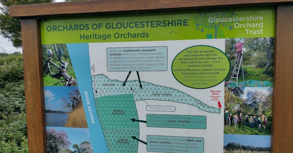 It’s Apple Day, one of my favourite days of the year and what better way to celebrate than to tell you about my recent trip to Longney, where Gloucestershire Orchard Trust have 18 acres of apple orchard under their tender care. Here you’ll find older orchards with some trees well over a century old, plus their newer plantings of around 94 Gloucestershire cultivars which have just acquired national plant collection status at Plant Heritage. The jury’s out on the actual number as DNA testing has revealed at least one locally named variety is actually a more well known one: Ribston Pippin in this case. Don’t worry, there are dozens there which definitely have their origins rooted firmly in Gloucestershire and their cultivation at Longney is vital to their continued presence and preservation. There were around 200 local varieties at one time and today it’s around 100 still in existence.