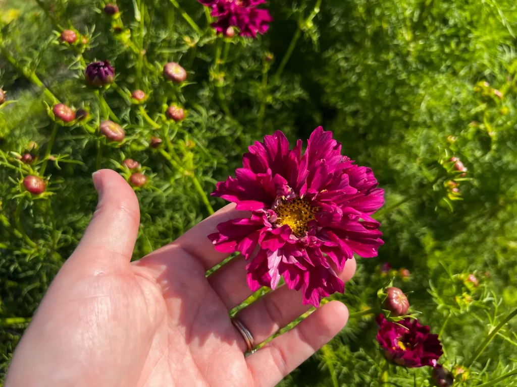 Keep an eye out for pests, though cosmos are usually low-maintenance and pest-resistant. Deadhead spent blooms to keep the plants flowering.