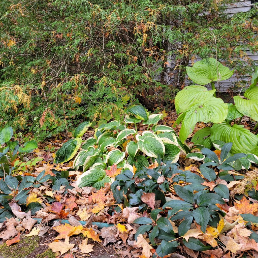 Also if you have a ground cover, particularly one made of plants (sedum, moss, juniper), you’ll not want a heavy leaf cover on those. I don’t think that needs further explanation.