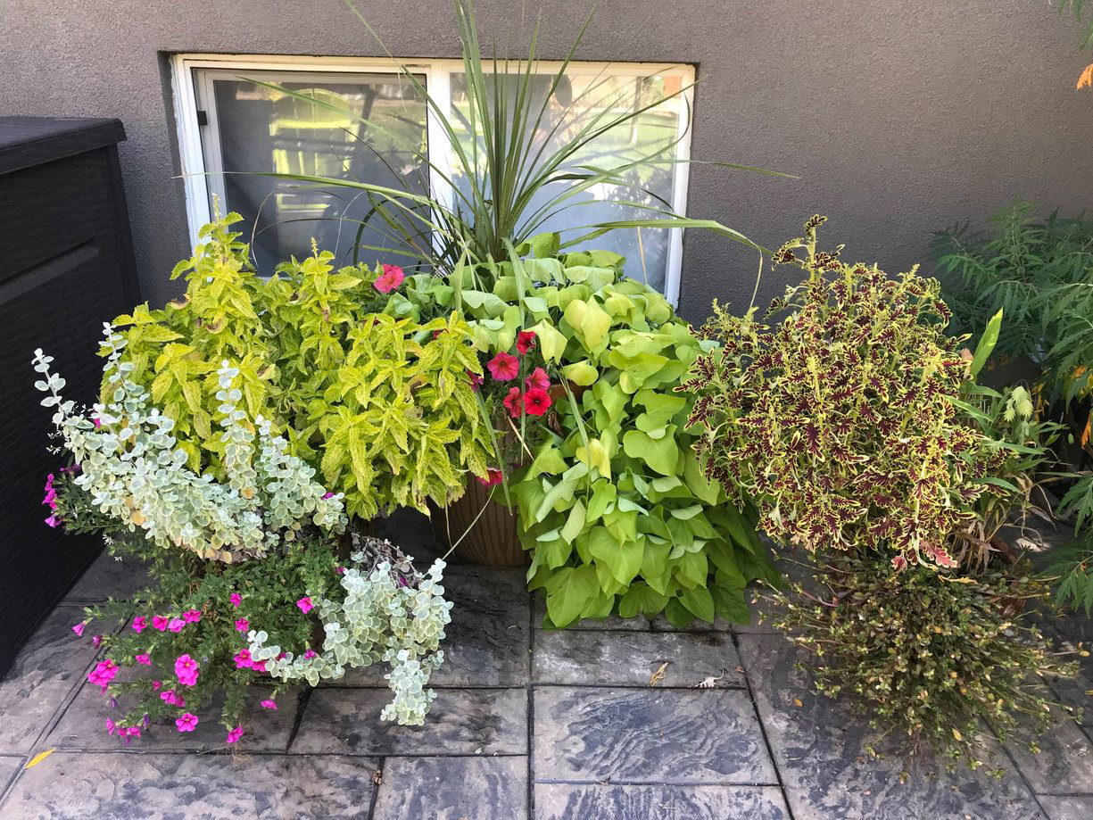 Over the years, foliage has become the foundation of most plantings. Flowers are always enchanting, yet interesting foliage plants, especially coleus, ensure consistent beauty throughout the season. Along with grasses, which fare well through bouts of hail, perennials such as hostas and heucheras are great container choices.